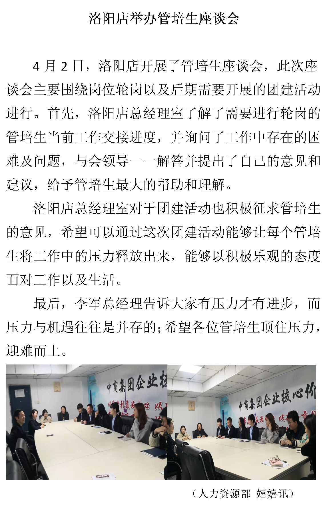 中央商场洛阳店组织召开管培生座谈会