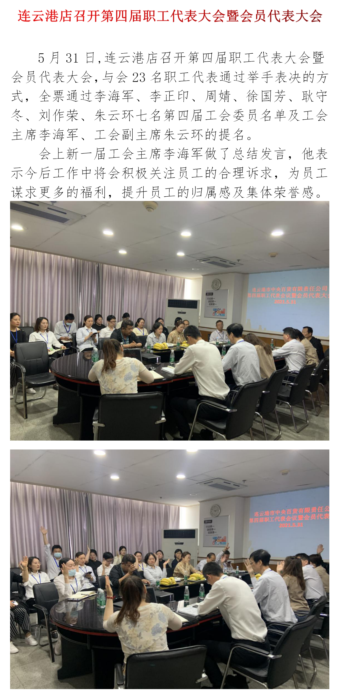 中央商场连云港店召开第四届职工代表大会暨会员代表大会