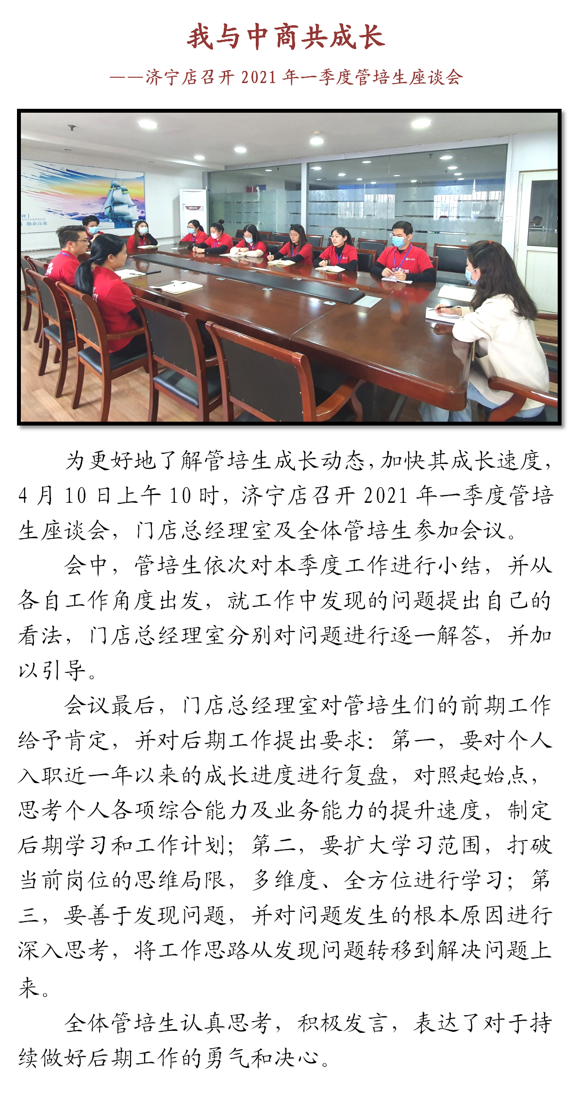 中央商场济宁店组织召开2021年一季度管培生座谈会