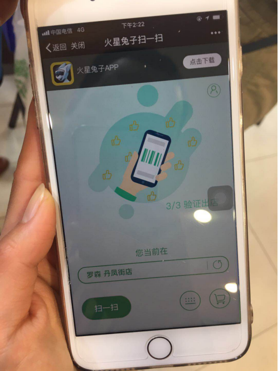 顾客选购商品时只需通过火星兔子微信公众号或APP扫描商品二维码加入购物车,选购完成后进入支付页面,选择用微信或支付宝付款,付款完成后自动生成聚合码,将该聚合码出示给工作人员扫描后即可离店。